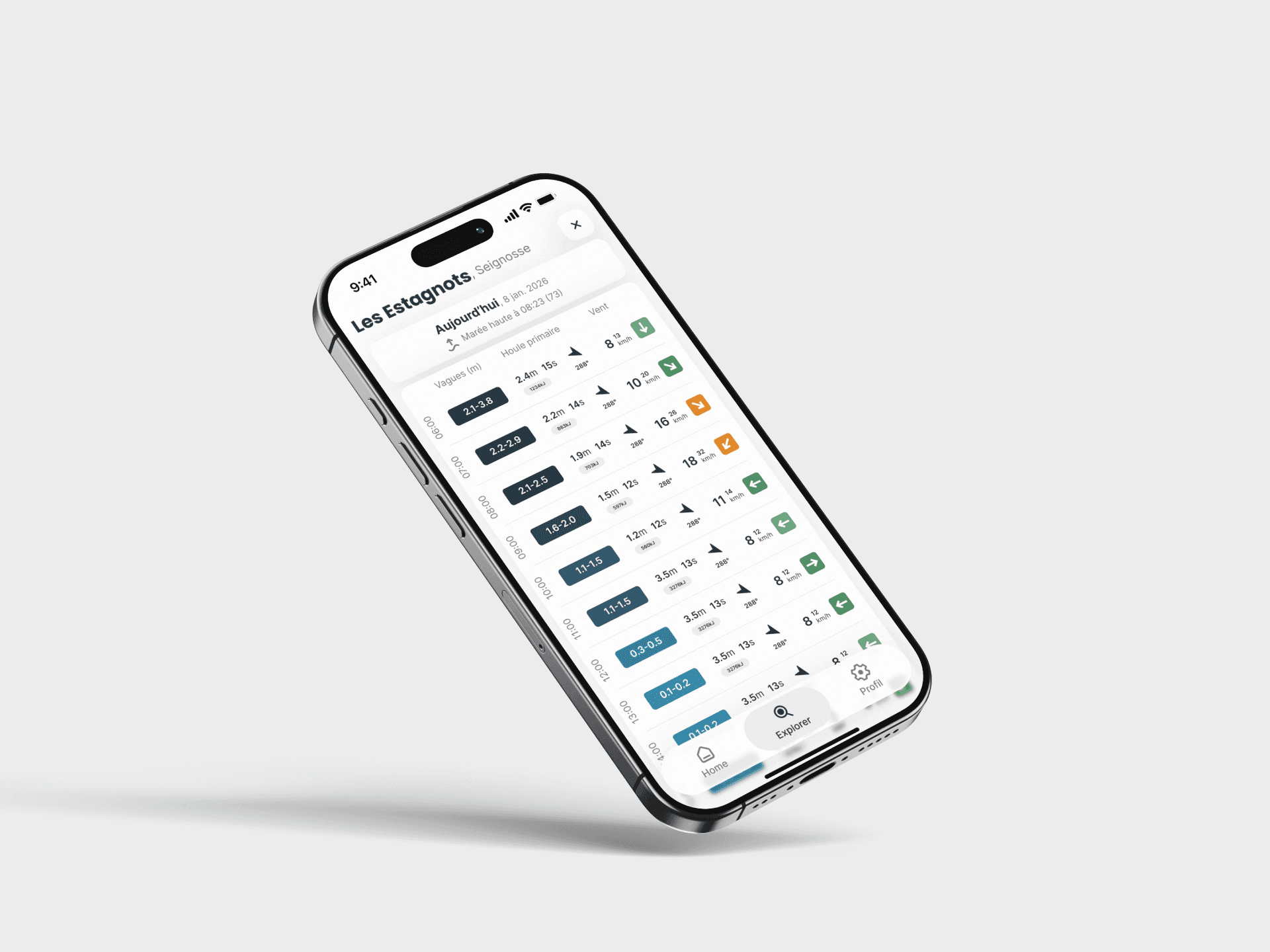 → Localization: Unlike global competitors, Swll focuses on the specificities of French/European spots for now (accurate tide coefficients and culturally relevant spot descriptions).
