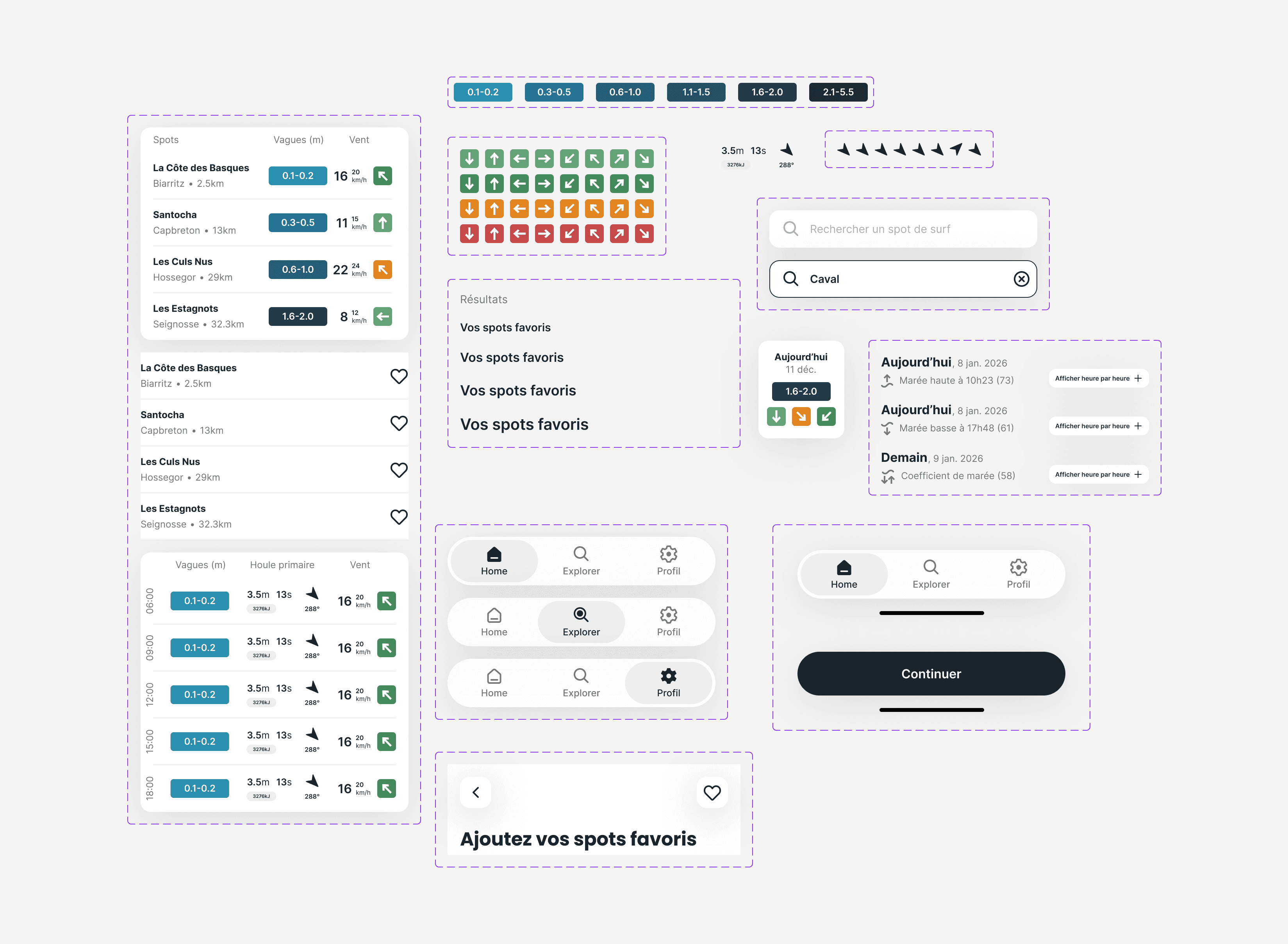 The global surfing market is experiencing rapid digitalization, particularly in Europe and the French Atlantic coast. While the demand for accurate forecasting is at an all-time high, the current digital landscape is fragmented. Dominant players provide raw, global data but lack local nuance. Conversely, local apps often suffer from outdated legacy code and poor UX. The market opportunity was clear: a premium, localized tool bridging the gap between raw meteorological data and the immediate decision to surf. I operated as the lead across the entire product lifecycle (0→1), bridging the gap between business strategy, design, and engineering. → Product Strategy: Defined the roadmap, conducted user research (Typeform, Focus Groups), and validated the core value proposition. → UX/UI Design: Built a comprehensive Design System and high-fidelity prototypes. → Technical Bridge: Orchestrated a seamless design-to-dev handoff. I delivered exhaustive technical specifications (edge cases, logic flows) and conducted rigorous QA to ensure the developed product matches the design intent and performance standards.